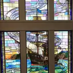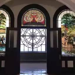 The colorful stained glass in the second floor hall and the classical interior are also must-sees.