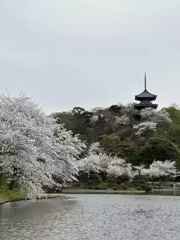 Take a leisurely walk along the pond, gaze at the three-story pagoda and its reflection, and let the falling petals make time seem to stand still. Unlike crowded tourist spots, the cherry blossoms here offer a tranquil and elegant atmosphere.