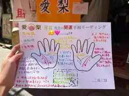 12:30 PM: Hand-drawn palm reading at "Fortune Teller Airi." 🔮