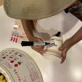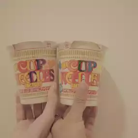 We made our very own original "Cup Noodles" at the My Cup Noodle Factory! He loves dinosaurs, so he calls it Jurassic Noodles because it's made from dinosaur meat!