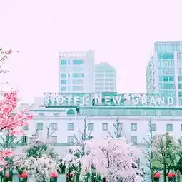 • Photograph the classic Hotel New Grand through the cherry blossoms