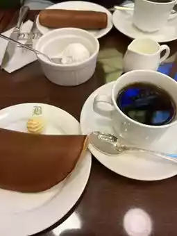 For breakfast, we enjoyed coffee and "Pastel," a dessert made from the skin of a dorayaki pancake, at Bunmeido Cafe, to kick off the day in style.