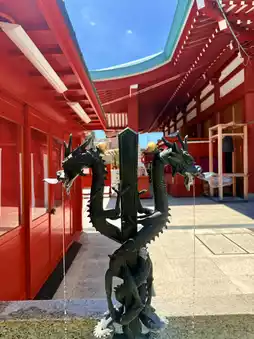 Photography is strictly prohibited inside the main hall, but outside the hall stands a statue of Irō Myōō, covered in gold leaf. Those wishing for good health can request gold leaf and make a wish at the temple office.