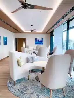 Located at Yokohama Hammerhead, the "InterContinental Yokohama Pier 8" welcomes guests with a stunning spiral staircase reminiscent of ocean currents and seashells. This staircase, leading to the reception on the second floor, serves as a symbolic feature of the hotel. The indirect lighting along the curved lines and the natural light streaming through large windows create a breathtakingly beautiful scene.