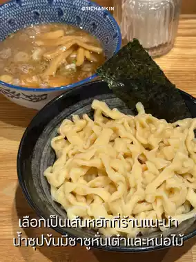 The shop opens at 11:00 AM and we arrived at the shop at 10:55 AM. There were already three people waiting outside. The problem with almost every ramen restaurant in Japan is that they accept cash. So if you're planning a ramen trip, be sure to have cash ready. 💵 When you enter the shop, there's not a huge selection of menu items. All you have to do is choose your toppings and noodles. There are five options. 🍜 I ordered the shop's recommended noodles, the wavy noodles, which resemble potato chips. 😅 The soup was thick and flavorful, with diced chashu and bamboo shoots inside. The soup was slightly salty, with a tonkotsu (pork bone) base and a subtle fishy aroma. It was a bit too thick to sip. The bamboo shoots were tender and delicious, while the chashu was made entirely from meat. The highlight was the shop's handmade noodles. 👍🏻 The noodles were cold, likely boiled and shocked with cold water, resulting in a chewy texture that wasn't too soft. Dipping them in the hot soup makes the noodles even more springy and delicious. The wavy noodles, which have been soaked in the soup, bring out the full flavor of the soup. Another special feature I found on the table was seasoned puffed rice. 🫔 I tried it as a snack and it tasted like fried puffed rice, which was really fun. Adding it to the soup adds an extra crunch to the dish. It's a special combination that goes really well together. I highly recommend ordering several types of noodles to share. They're all delicious! 🥳