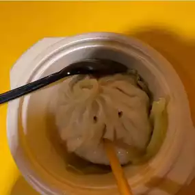 A straw is stuck into the large xiaolongbao, and you drink the hot meat juice through the straw ✌️ It was delicious with lots of meat juice 🤤 I sipped too much and the hole in the straw made a face 🙂 lol