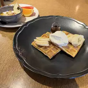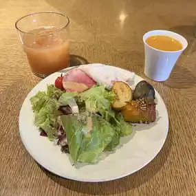 You can choose from six main dishes, and I ordered a waffle 🧇 It also came with a salad bar and a drink bar, so it was very filling ♪