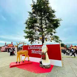 With German cuisine like meat and sausages, wine, and Christmas goods for sale, a 10-meter-tall Christmas tree, and illuminations, the entire atmosphere is truly Christmas-like! 🎅🌟