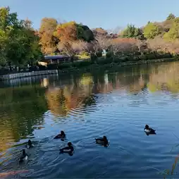 There are carp and ducks in the pond, and there is a large slide, so it's a popular place for families with children.