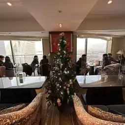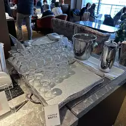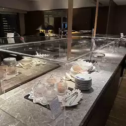 This is the lounge floor of Yokohama Bay Hotel Tokyu. You can enjoy the lounge services while looking at the beautiful Minato Mirai scenery. You can enjoy free drinks and snacks, and depending on the time, you can even enjoy light meals and a bar counter. It was an amazing service.