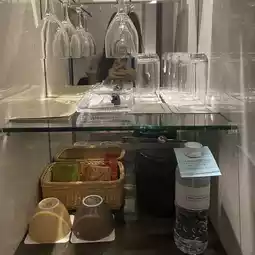 The building in which the hotel is located is obviously very tall, so it's quite a challenge to even look up.