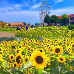 Located in Yokosuka City, Kanagawa Prefecture, Nagai Umi-no-Te Park is about a 2-hour journey from Tokyo Station by train and bus. The park offers stunning views where the deep blue sea contrasts beautifully with vibrant sunflowers. Every glance is a picture-perfect moment, and under the sunlight, the scenery becomes even more radiant, resembling a dreamy scene straight out of a painting. Each year, many visitors flock to this breathtaking spot to admire its beauty. The park also features paid attractions, making it a great place for children to enjoy.