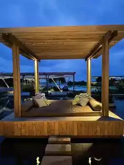 The pool in front is up to your knees, so you can enter barefoot with your clothes on, and there is also a bed to lie down on 🕊️