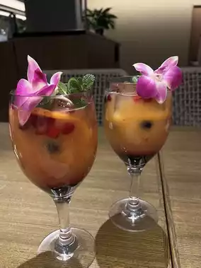 Our top recommendation is the homemade Casiole 🍹. There's also plenty of cut fruit, so you can enjoy a delicious drink tailored to your taste.