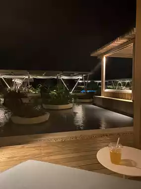 At night, the pool is beautifully lit, making it a perfect spot to unwind by the poolside.