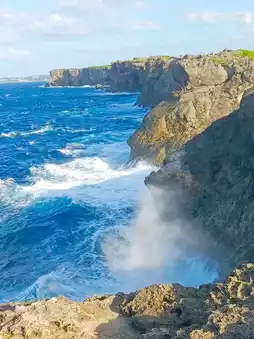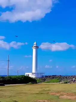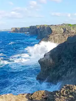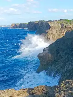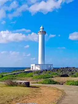 Zanpa Cape (残波岬) is a scenic viewpoint located in Yomitan Village, in the central part of Okinawa Prefecture. It features a steep cliff approximately 30 meters high that extends into the sea. It is also home to one of the tallest lighthouses in Okinawa.