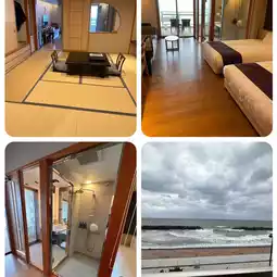 The room is very large, the bed is very comfortable, the lobby is very spacious, and the bathroom is also very large. It is directly connected to the terrace. There is an open-air bath on the terrace♨️. It is very comfortable to bathe while looking at the sea. In addition, there is also a hot spring on the top floor of the hotel, which is indoor And open-air, it’s also very nice👍🏻