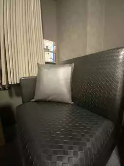 The large sofa seats have tables next to them, so you can eat and drink, or do some light computer work.