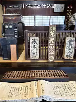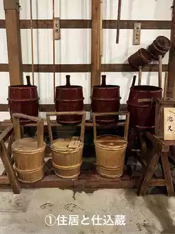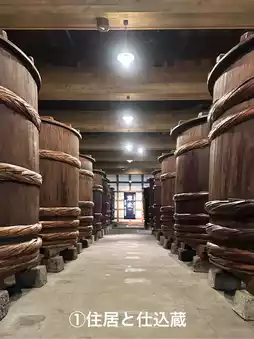 The brewing storehouse is a renovated large earthen storehouse with a floor area of 450 tsubo, where sake brewing was actually carried out.