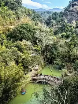 Inside the cave, I listened intently to the sound of water, reminiscent of the ancient poetic line, 'Clouds rise over the stream as the sun sets behind the pavilion.' At the exit, verdant mountains stand like ink-washed paintings, and the lake mirrors the distant peaks and ethereal clouds. Taoyuan Cave is not merely a natural wonder but also a retreat from worldly distractions, offering a dialogue with nature. It invites visitors to linger a while longer and savor its innate poetic charm.