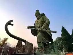 🕙9:00 Arrive at Yongcheng Liu Bang Zhan She Chu Scenic Area. Take a photo in front of the entrance. The ancient buildings have a strong sense of history. Once you enter the scenic area, you will see the magnificent statue of Liu Bang Zhan She, which is 21.4 meters high. The moment he draws his sword seems to freeze history. Take a photo to capture the moment. Every angle is photogenic.