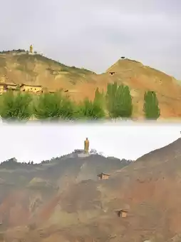Zhutoushan is located in Kushui Town and is one of the top ten landscapes of Lanzhou, with Danxia landform, connected mountains and rivers, and red sandstone layers. There is a Xishan Temple and a 21.95-meter-tall copper Buddha on Zhutoushan. The ticket price is 50 yuan.