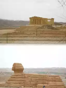 Scenic spots such as the northwest desert, the Sphinx of Egypt, Greek temples, and the Sphinx.