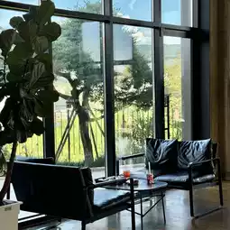 A place where you can feel the dazzling sunlight and the green nature through the large window.