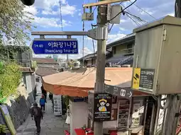 Centuries later, we climbed another hillside. The cement stairs of Ihwa Village replaced the dirt paths of the past, and the blue street sign reading 'Ihwa-dong 1na-gil' silently narrated the historical distance between this place and the grand residences of the elite below. Looking up, the web-like electric wires, the lifeblood of modern civilization, deliver light and information to every household, completely redefining the meaning of survival. Today, people's spiritual solace is no longer a pile of stones but murals on walls, filled with heartwarming stories.