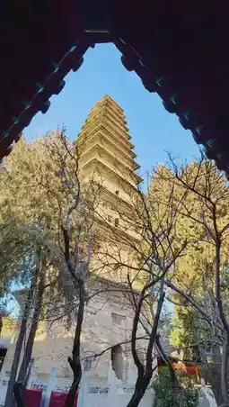 With the "Sarira Stupa" as its core, the octagonal, thirteen-story dense-eave brick tower stands over 50 meters tall, resembling a giant pen reaching for the sky, and is known as the "First Pagoda of the Central Plains." The tower features exquisite reliefs, and wind chimes tinkle from the eaves. Ascending the tower offers a panoramic view of the rushing Yellow River and the verdant mountains, encompassing both the Buddhist realm and the earthly scenery. In addition, the Tang Dynasty murals in the Mahavira Hall and the Ming Dynasty wood carvings in the Sutra Depository, every brick and every piece of wood is engraved with stories of time.