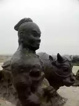 The Puzhou Puzhou Ferry Site is located outside the west gate of the ancient city of Puzhou, 18 kilometers southwest of Yongji City, Shanxi Province. According to historical records, a floating bridge was built during the Qin Dynasty, and later the Eastern Wei, Western Wei and Sui dynasties all built floating bridges here. In the sixth year of Kaiyuan Period of Tang Dynasty (718 AD), Puzhou was established as Zhongdu. In the twelfth year of Kaiyuan Period (724 AD), Emperor Xuanzong of Tang Dynasty appointed Minister of War Zhang Shuo to be in charge of the project. He replaced wooden piles with iron oxen, ropes with iron chains, dredged the space between ships, and devoted national strength to carry out a large-scale reconstruction of Puzhou Bridge. Four iron oxen were cast on each bank of the Yellow River to maintain the bridge. There is an iron man next to each cow, and there are two iron mountains. In August 1989, the Iron Ox and Iron Man were unearthed. The iron oxen are rare in the country due to their large size, heavy weight, large number, exquisite craftsmanship and early history, and are known as national treasures.