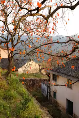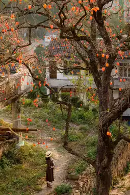 Xilu Village is more wild, with old houses and black tiles. Whether you take photos of the scenery or people, they all look amazing! The persimmon trees in Xilu Village are low, making it especially suitable for family self-picking tours.