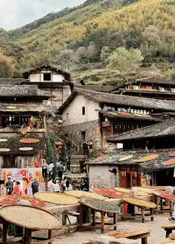 Linkeng has a history of more than 700 years and is the best-preserved mountain residence in Wenzhou's Nanxi River. It is built along the mountain and river, with a typical bamboo and wood structure of southern Zhejiang. The houses have white brick walls and black tiles. From November 9, the village will hold a two-month autumn harvest event! Every household will dry colorful crops. Linkeng looks best when the lights are on in the evening! Unfortunately, I was so fascinated by the persimmons that I missed the evening time 🥹