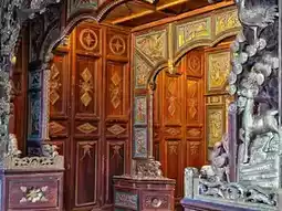 The Babu bed—it's actually a bed. In the Folklore Museum of Furong Ancient Village, Yongjia, there is a Babu bed that can be called a rare masterpiece. This bed dates back to the Republican era, measuring 7.16m long, 2.21m wide, and 2.42m high, totaling about 15 square meters. It's more like a room than a bed, isn't it? According to encyclopedias, a Babu bed, also known as an "Eight-Step Bed," is an old-fashioned large bed with a green gauze curtain and steps. It's called an "Eight-Step Bed" because it supposedly takes eight steps to walk from one side to the other. Mostly used in the south, where the warm climate attracts mosquitoes and flies, the bed frame is designed for hanging mosquito nets. Its overall layout creates a space that's like a small house within a room. This type of bed appeared in the late Ming Dynasty, a time of extravagance among the scholar-official class and corruption among officials, who built grand residences with rooms within rooms. After the Republic of China was established, this type of bed was used in wealthy families in the Jiangnan region. This was my first encounter with both the term and the object itself—quite educational. The display sign indicates that this bed has seven sections and eight panels, taking over a thousand man-hours to create. The carvings depict landscapes, figures, flowers, birds, and auspicious beasts, some decorated with gold powder. The craftsmanship is intricate and awe-inspiring.