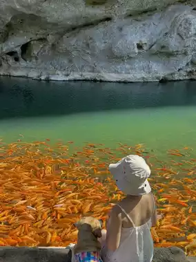 Navigate directly. A roadside spot highly recommended for photos. Over ten thousand koi fish, very beautiful and photogenic. In the off-season, if not many people, 10 minutes here is enough.