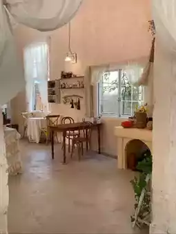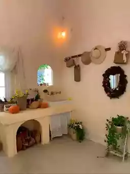 Stepping inside, the warm yellow walls seem kissed by sunlight, soft and cozy. White lace curtains hang gently, swaying slightly with the breeze, as if dancing an elegant dance. The wooden furniture carries the texture of time, each grain telling an ancient story. Lively green plants and bright flowers decorate the corners and tables, and the air is filled with a faint floral fragrance. Taking a deep breath, even the air feels sweet.
