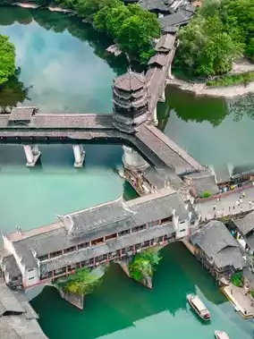 Several Xiangxi-style covered bridges, such as the Snow Bridge, Rainbow Bridge, Wind Bridge, Mist Bridge, and Cloud Bridge, connect the two sides of the ancient town.