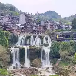 Perhaps Furong Ancient Village's most breathtaking natural attraction is the spectacular Furong Waterfall, a powerful cascade plunging 60 meters down the cliffs. This waterfall transforms the village into what locals call the "Town Hanging on the Waterfall," creating fairy-tale scenes of dwellings built into the cliffs surrounding the dazzling waterfalls.