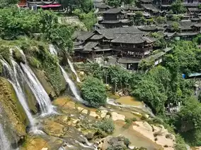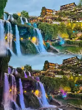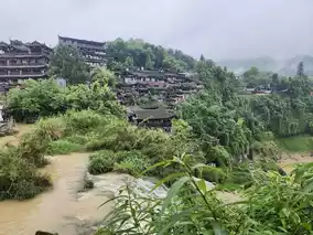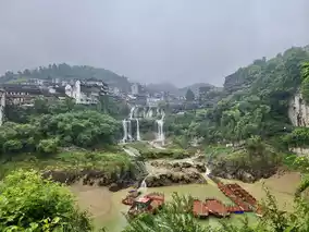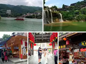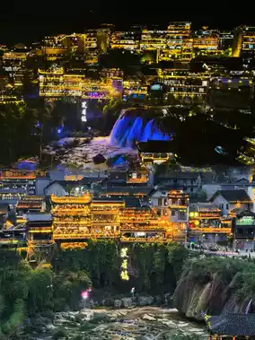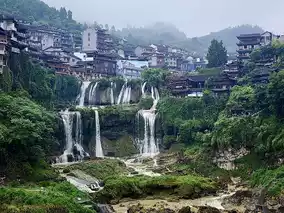 Furongzhen Ancient Town (芙蓉镇) is a famous ancient village in Hunan Province, China. It's renowned for its ancient architecture and beautiful nature, especially the large waterfall that flows through the town. You can enjoy the village's scenery both day and night. With a history of over 2,000 years, it's become a 4A-level tourist attraction in China. We visited during the rainy season, and it was incredibly lush. We were with a tour group, so we didn't stay until the night. The view was truly stunning and breathtaking. I highly recommend staying overnight.