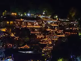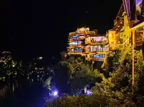 Discover the magic of Furongzhen after dark! The illuminated ancient stilt houses and the waterfall cascading through the glowing town create a scene straight out of a fairy tale ✨