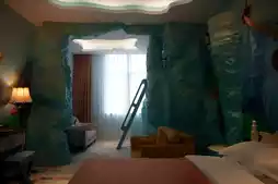 The murals in the rooms and corridors are all hand-painted by a professional art academy team, looking very lifelike.