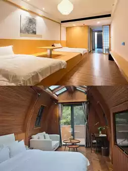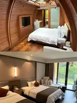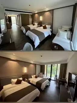 ❤️Outside the room, there's a large hot spring pool connected to the mountain forest. The air is very fresh, and the pool is very clean, cleaned twice a day, super reassuring. The hotel also has a lot of activities, including cool off-road vehicles and CS. They also have childcare and a children's play area, perfect for families.