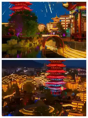 As night falls and the lights come on, the town seems like the prosperous Tang Dynasty. Fireworks shows/garden parties, plenty of activities