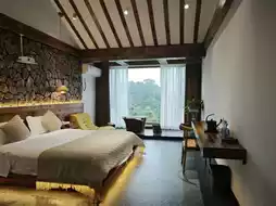 The guesthouse is nestled among mountains and waters, with a courtyard full of green plants and flowers, and wooden boardwalks winding through, making every snapshot a forest-themed masterpiece. The lobby is simple yet stylish, with warm pendant lights paired with rattan furniture, instantly relieving travel fatigue. The front desk thoughtfully brews local green tea and proactively introduces nearby sightseeing routes.