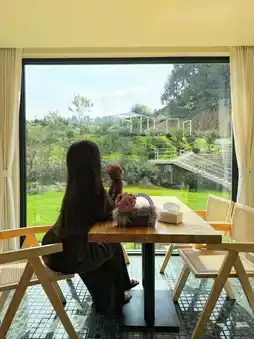 Just looking up, you see blue skies, mountain views, and drifting white clouds, so beautiful! 🥹 Such a quiet and comfortable place is really rare in the city~ Honestly, this kind of cozy vibe is perfect for coming with friends and pets!! The best part is the location is absolutely prime, right near Lushan West Sea, Yunju Mountain, Zhelin Ancient Town, and the Grand Canyon⛰️!!