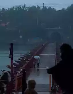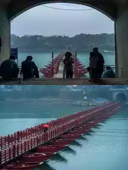 🛥️ Take a boat up, pass through the ancient city of Lingling under the Dongfeng Bridge, come to Xiakedu, the floating bridge in the rain and the Xiao River reflect each other, like a classical landscape painting, intoxicating. ⛵️🌧️