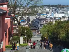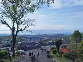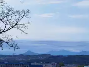 The city is full of white paulownia trees that are entering their peak blooming period. From the viewing platform behind the Wumiao Temple, the view is incredibly open and wide, even reminiscent of Mount Fuji.