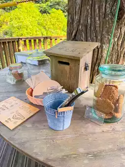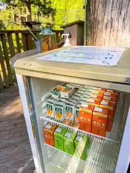 Across the suspension bridge is a space where handmade sweets and various drinks are sold.