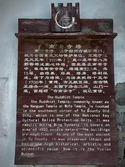 Nan'an Temple Tower was first built in the Northern Wei Dynasty and rebuilt during the Liao and Jin Dynasties. It is an octagonal solid brick tower with high historical and cultural value.