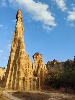 In the world, soil pillars of various shapes are mixed and distributed. If you look closely, some of the soil pillars look like mighty warriors, ready to go; others are like cones and arrows, pointing straight to the blue sky🌌, which is breathtaking. At dusk, the earth forest under the setting sun presents a charming golden color, which is a great time to take photos.